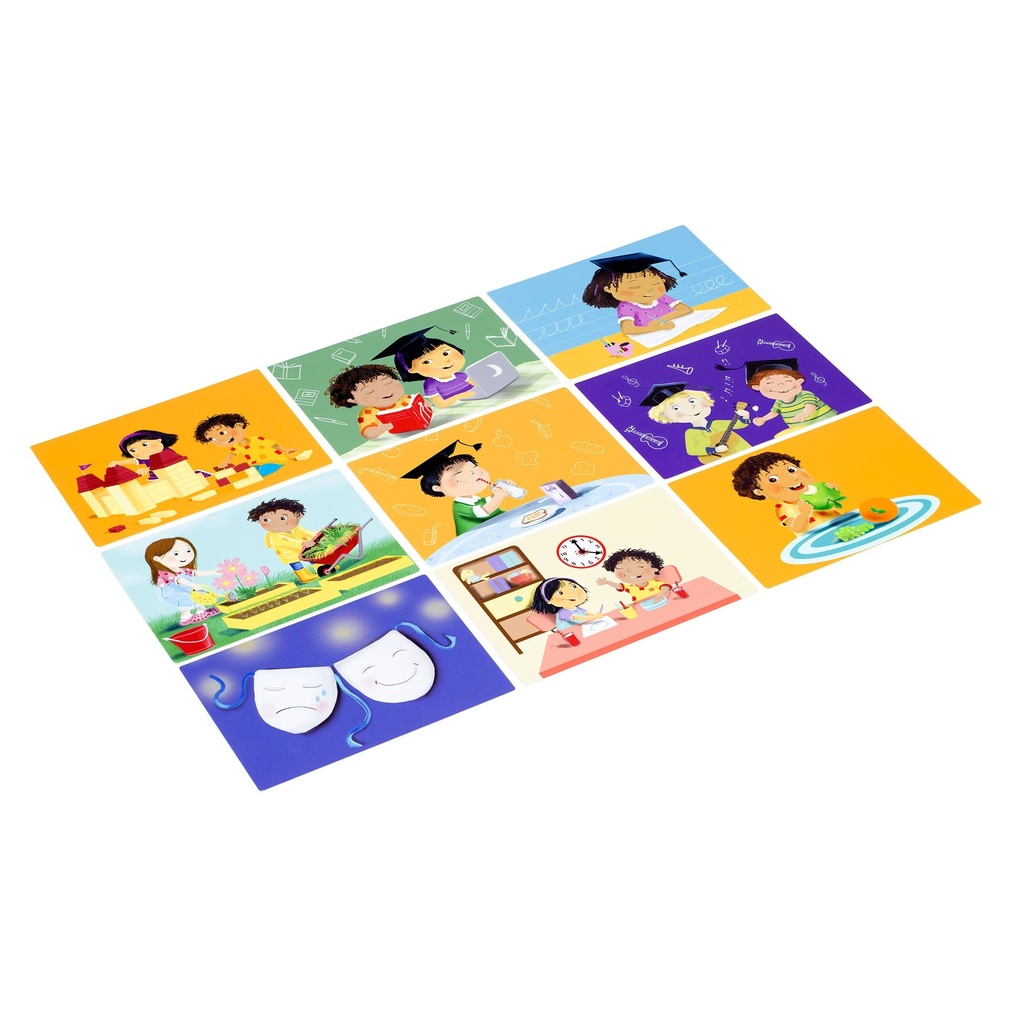 Tagesablaufkarten geben Kindern einen Halt. Die Karten helfen ihnen zu wissen, welche Aktivitäten an einem Tag anstehen. Außerdem verhindern sie, dass sie ständig nachfragen müssen, was denn nun passieren wird. Ein weiteres Ziel ist, dass die Kinder lernen, dass die Zeit vergeht und dass manche Aktivitäten länger dauern als andere. Darüber hinaus beschäftigen sie sich passiv und aktiv mit Begriffen wie „vorher“, „nachher“, „zuerst“ und „zuletzt“.