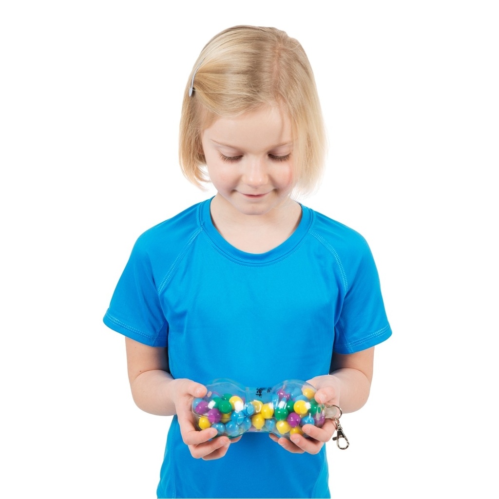 Der Doppelball lädt zur stillen Beschäftigung mit den faszinierenden Kugeln im Inneren ein, die sich verschieben lassen. Das robuste und langlebige Spielzeug gibt außerdem gedämpfte Geräusche von sich. Damit schulen Sie gleichzeitig auch das Rhythmusgefühl Ihrer Kinder. Aus strapazierfähigem Vinyl.